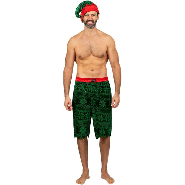 Secret Santa Mens Pajama Boxer Pants And Santa Hat Holiday Sleepwear Green Size Large Walmart Com